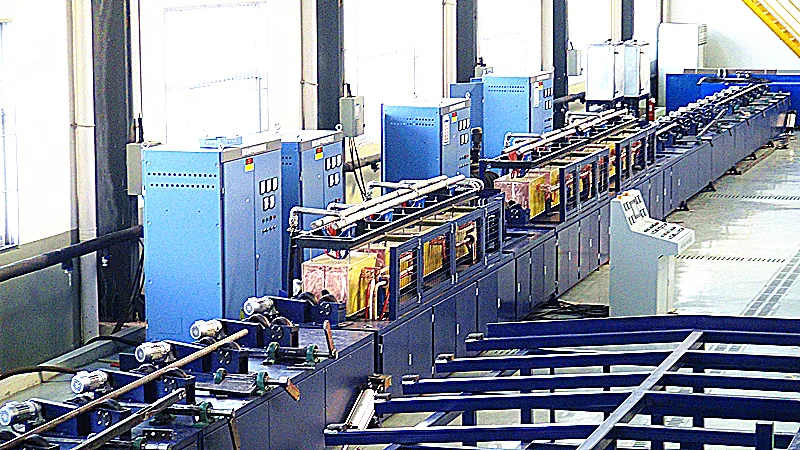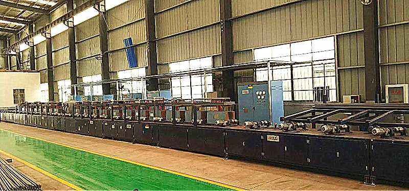 роликовый роторный механизм зоны нагрева, среднечастотная система закалки с индукционным нагревом: 450 кВт / 1,0 с+250 кВт / 1,0 с, нержавеющая сталь